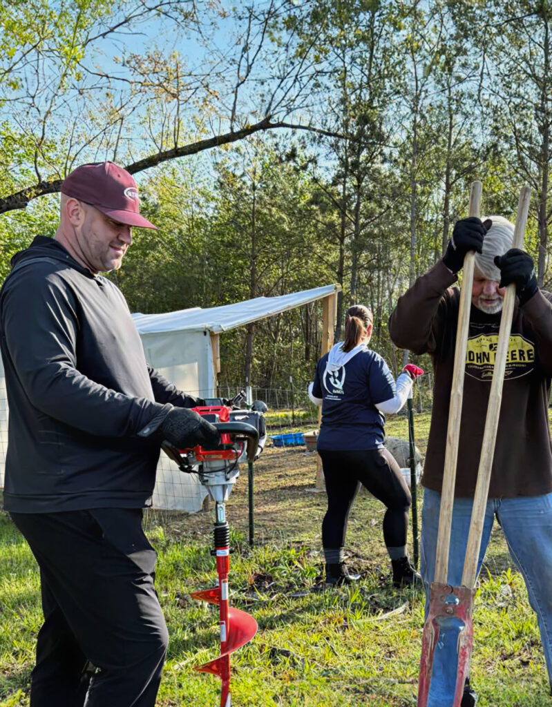 Helping Hands volunteers from Intrepid, an SPA Company, rolled up their sleeves and got to work at Next Step Farms. The crew established pasture fencing by digging, driving t-stakes, and setting wood posts to ensure the safety of the organization’s smaller farm animals. Way to go, team!