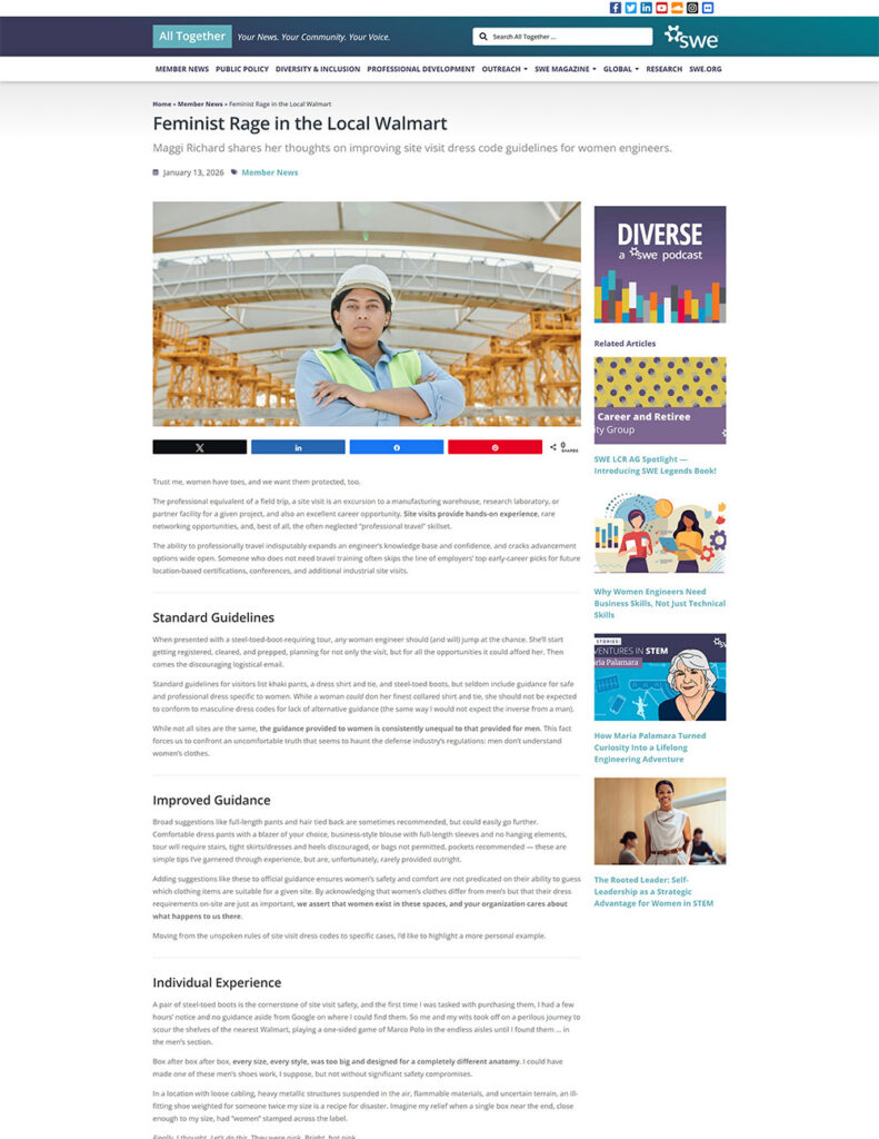 Read the full published article, Feminist Rage in the Local Walmart, on Society of Women Engineers.